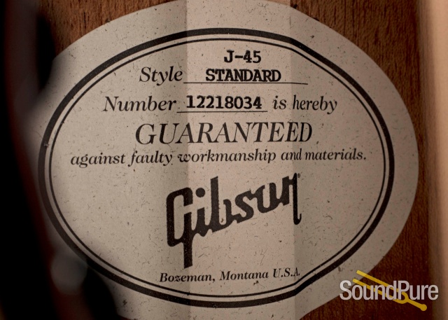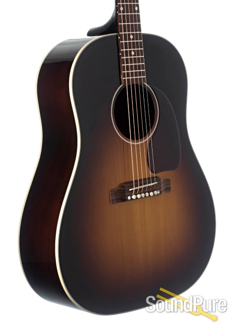 The J-45 is Gibson's best-selling acoustic of all time. Nicknamed "The Workhorse" and first introduced in 1942, this iconic acoustic has become the cornerstone of its round-shoulder, dreadnought line. World renowned for its full, balanced expression, warm bass and excellent projection, the J-45 has been refined to carry this legacy to new heights.