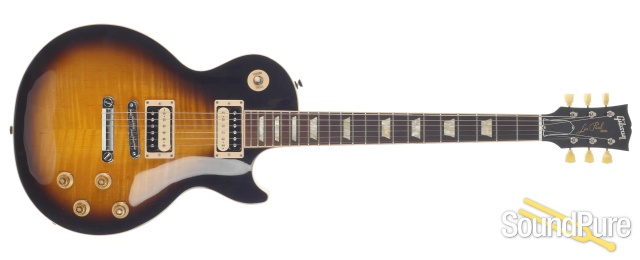 Utter the phrase “Les Paul Standard” and most players will bring a clear visual and sonic image instantly to mind. For the rockers among us, chances are that this vision will embody the Les Paul Classic Plus from Gibson USA, a powerful embodiment of a legendary guitar that looks every lick as good as it sounds. Crafted from premium tonewoods, the Les Paul Classic Plus carries a highly figured Grade-AA maple top, which looks absolutely stunning beneath your choice of Vintage Sunburst, Heritage Cherry Sunburst, Trans Ebony Burst or Manhattan Midnight finish, all in high-gloss, hand-sprayed nitrocellulose lacquer. Classic Les Paul Standard appointments such as acrylic trapezoid fingerboard inlays and cream body and neck binding are accompanied by a deceptively powerful pair of humbucking pickups mounted “open-coil” for a modified look that sits great with the guitar’s lack of pickguard, which also serves to show off the Les Paul Classic Plus’s gorgeous wood. And, to top it all off, players can choose their preference of rounded ’50s or slim ’60s neck profile.