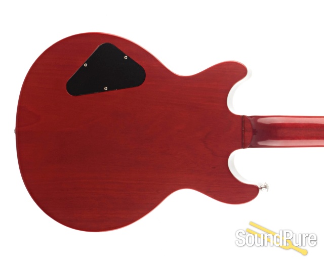 As part of Gibson USA’s 120th Anniversary celebrations, the Les Paul Classic Double Cutaway brings together the timeless elegance of the Les Paul Standard in a contemporary package offering optimum playability and tone. The “DC” rendition of the Les Paul has long been popular for its extended upper-fret access and contemporary styling; now all that comes together with a pair of Gibson’s most popular pickups, streamlined controls for on-the-fly maneuverability, and a lusciously figured Grade-AAA maple top beneath a high-gloss Trans Red nitrocellulose finish. The result is a guitar that retains many great classic elements of its predecessors, while offering the enhanced performance that today’s hardworking guitarist demands.