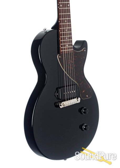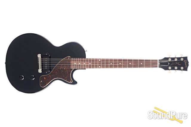 The Les Paul Junior returns to the classic design that made it relevant, played and loved -- shaping sound across generations and genres of music. It pays tribute to Gibson's Golden Era of innovation and brings authenticity back to life. Introduced as an affordable option for students and beginners in 1954, the Les Paul Junior has been embraced by musicians for over 60 years. The single cutaway slab mahogany body, single dogear P-90 pickup, single volume and tone controls all add up to a whole lot of guitar which is greater than the sum of its parts. The fat 50's-style neck profile and wraparound bridge add to the equation for rock solid tone. Available in Tobacco Burst and the new Ebony finish with tortoise shell pickguard.