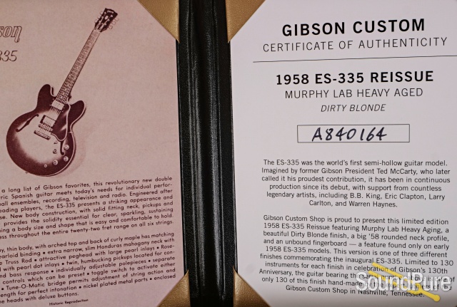 The Historic Reissue ES-335 is back and better than ever, thanks to a year of studying, scanning, and listening to original examples. The expert craftspeople at Gibson Custom Shop have rendered every contour, profile, inlay, and color of the priceless vintage models in magnificent detail. The result is a playing and ownership experience that will keep you coming back for more. The 1959 ES™ Reissue models feature rounded cutaways, Medium C-shape neck profiles scanned from originals, dot inlays, and vintage-replica parts. It also features Light Aging by the skilled artisans of the Murphy Lab. The Murphy Lab Light Aged finish treatment, paired with lightly aged hardware, simulates decades of natural play wear, giving it the unique character, vibe, and feel of an original example from the Gibson Golden Era.
