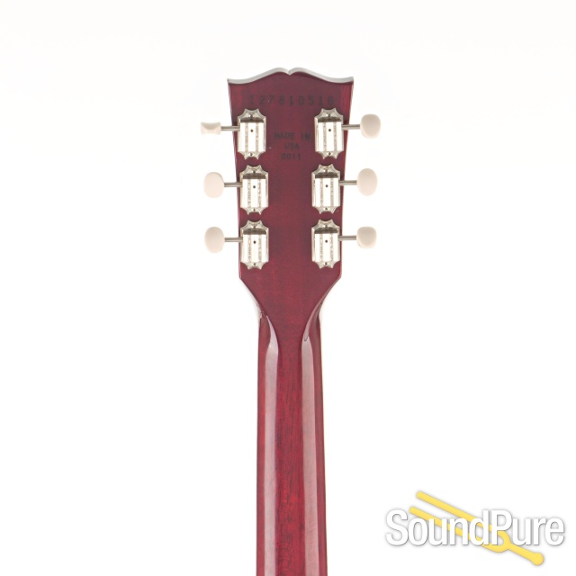 A lighter SG with tonal cut to match its sharp looks. The single P-90 pickup at the bridge of this Gibson SG JR P-90 Electric Guitar generates a more edgy yet still full-bodied tone that calls to mind Pete Townshend. The mahogany body and set mahogany neck generate great resonance for increased sustain. In 1961, the Les Paul was redesigned with a thinner body and 2 sharp cutaway horns that making the upper frets more accessible while lowering production costs. The new model was popular, but Les Paul the guitarist did not like it and asked to have his name removed. Gibson renamed the model the "SG" which was short for "solid guitar". Though Les Paul's name was officially removed from the model in 1961, the plastic Les Paul nameplates (positioned between the rhythm pickup and fingerboard) were in abundance in the Gibson factory and SG models having these nameplates were built and sold by Gibson up to end of 1963. SGs have been the choice of world-class artists such as Pete Townsend, Eric Clapton, Tony Iommi, and Angus Young.