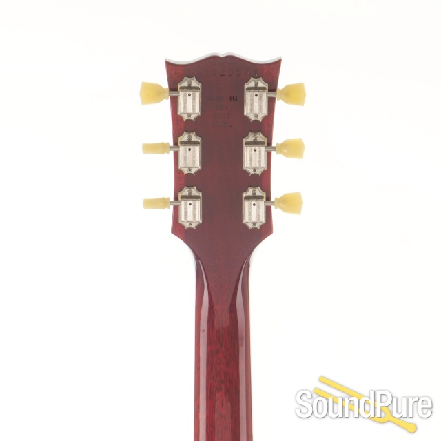 The Gibson SG Standard ’61 in Vintage Cherry is an electric guitar that feels alive in your hands—an instrument that invites you to play longer, dig deeper, and discover new sounds every time you pick it up. With its solid mahogany body, slim taper neck, and rosewood fingerboard crowned with acrylic trapezoid inlays, it captures the fiery spirit of the early ’60s while offering rock-solid playability for the modern player. The dual 60s Burstbucker humbuckers deliver everything from warm, vocal-like cleans to roaring, articulate drive, all tamed by a classic set of volume and tone controls plus a smooth 3-way switch. Topped with a gloss nitrocellulose finish and outfitted with the Maestro Vibrola tailpiece, this SG sings with both elegance and edge.
