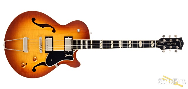 The Godin Montreal Premiere is a thinline, semi-hollow electric guitar, and it is destined to become an instant favorite within your guitar collection. This model is a vibrant & versatile electric guitar for rock, blues, and jazz players alike! It features an innovative and unique “breathe-through” carved spruce core, which gives the body of the Montreal Premiere an astounding resonance unlike any other guitar in its class.