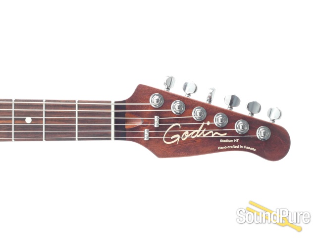 Rule the stage with the Stadium HT! This modern single-cut axe sets itself apart with looks and features that call out to the true musician in all of us. Take hold of the silky feel of the Stadium HT Hard Rock Maple Neck and see how quickly your fingers start doing the talking with inspired licks and riffs. The super light Canadian Laurentian Basswood string-through body is balanced, expressive, and smoothly finished. Speaking of finish, each Stadium HT has a unique acoustic-inspired finish that gives the body a vintage look and feel, all the while allowing it to breathe and resonate more freely, and genuinely age and wear as you play for it that weathered look, like that comfy old pair of jeans. Great sustain and tone come standard with the Custom T-Ashtray Hardtail Bridge complete with brass saddles, and notes are expressive via the Custom Godin Cajun at the bridge and Godin GS-3 at the neck. Adding to the vintage vibe with a modern twist is the reinvented vintage-style control plate, complete with Volume, Tone, and slanted 3-Way Switch—aligned with the natural sweep of your right hand for easy pickup selection.