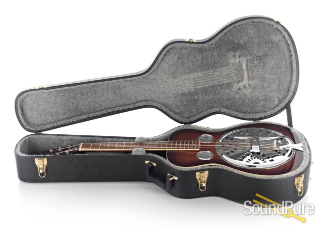 A handsome mahogany body and neck finished in a rich tobacco sunburst plays host to the famed Paul Beard "open" soundwell, resonator cone and spider bridge. This combination produces the sweet wood and metal tone that's so ideal for country blues and fingerstyle solos. Available as left-handed model.