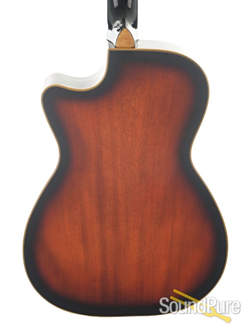The cutaway version of our PBR has a handsome mahogany body and neck finished in a rich tobacco sunburst. It's equipped with the famed Paul Beard "open" soundwell, resonator cone and spider bridge. This combination produces the sweet wood-and-metal tone that's so ideal for country blues and fingerstyle solos.