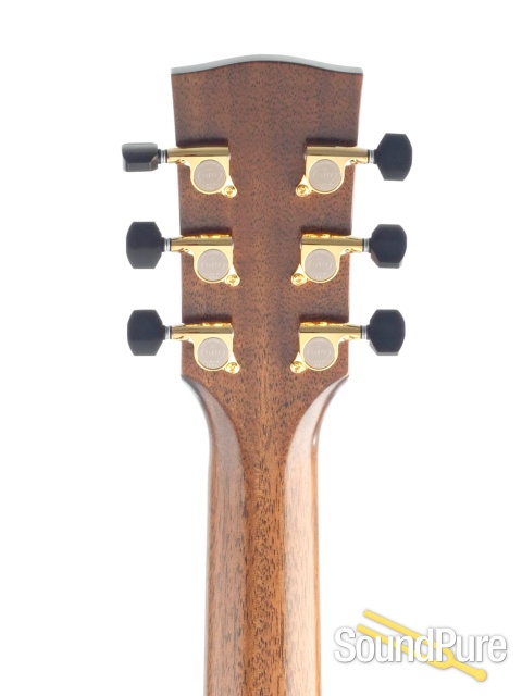 The Parlor series guitar has a shorter 25" scale length. It has a scaled down bridge, peghead and sound hole. It is available in a 12 or 14 fret neck joint with a non slotted peghead or an optional 12 fret neck joint with slotted peghead* and bronze patina Waverly tuners. The 12 fret model has a sweet, round and responsive voice similiar in tone to a classical guitar. The 14 fret model has a little more punch and clarity in the mid range, and is very similiar to our Grand Concert series instrument.