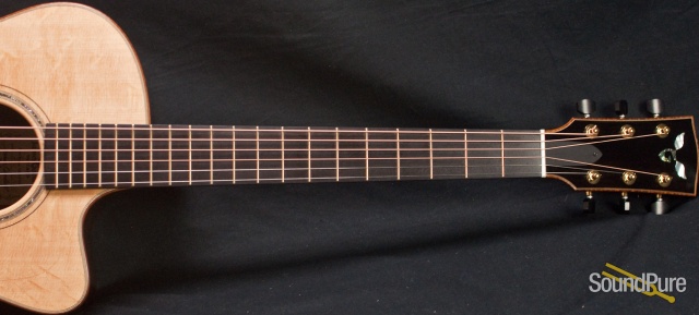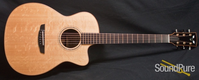 If you're looking for one of the most complex and rich sounding guitars on the planet, you may well have come to the right place. This Grand Concert cutaway just smokes. The set of rosewood on this guitar is simply spicy and has overtones that will rattle the room. Usually a Sitka top will put a lid on all that but this remarkably bear-clawed top behaves more like an Adirondack top, with a bit more clarity. If you're looking for booming bass response with tons of bright clarity on the top-end, this is the guitar for you. Handles a flatpick and fingers with equal and surprisingly different results. Playing some bluegrass, I felt like I was playing some modern Brazilian speed demon, and when I switched to my fingers I was amazed by how much clarity I was getting out of my notes. They sure know how to make a great guitar out there in California!