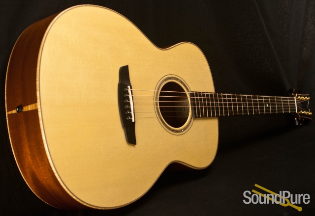 The Concert Jumbo series guitar is slightly smaller than the Standard series and larger than the Grand Concert series guitar. It is available with all the same fine options and wood choices as in all Goodall guitars. The pale engelmann spruce top on this concert jumbo contrasts beautifully with the reddish mahogany back and sides and the maple binding and abalone add a touch of elegance. SoundPure Acoustic Guitar Expert, Robinson Earle shows you just how beautiful this guitar can sound. If you like what you hear, check us out at SoundPure.com or give us a call anytime at 919-682-5552.