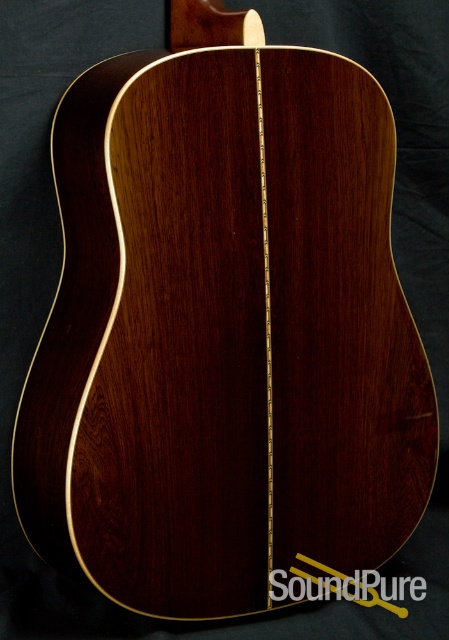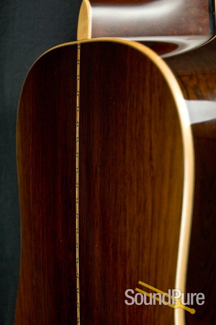 This top is master-grade, people, and the guitar was built by the master, himself. The tone is round, yet lush, like a well-kept garden. The grain on the Addy is so tight you'll need a microscope. Seriously, it has a golden, three dimesional quality that indicates the best of the best. The Braziiian is rich, dark, and straight, and it was surely the pick of the litter. You don't see this grade of Brazilian very ofter, anymore.