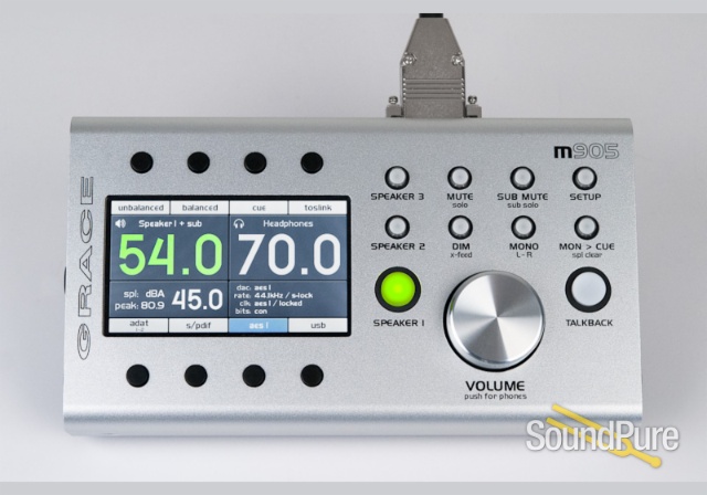 Now for the part that tops it off, the Remote. The touch screen design is just fantastic. It gives you everything you need to set your studio up the way YOU want to monitor. For us, one of the nicest features is being able to level match 2 different monitors inside the m905. Nothing is worse than trying to make decisions, changing monitors and having the outputs drastically different between your small pair and large pair of monitors. Just an example of the depth Grace went to in the design, you can calibrate every aspect of m905 to suit your needs.