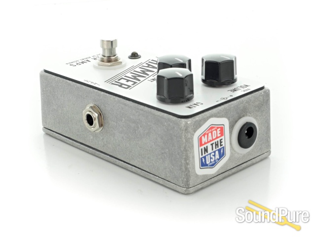 The Hammer is an amazing and versatile pedal. With tones that range from gnarly Texas rock distortion at one end of the spectrum, to squashed out, almost cut-off fuzz, this pedal has a ton of texture on tap! The Gain and Grunt control work in tandem with one another. As they are both increased, the pedal transitions from distortion to fuzz. The Grunt control hisses and pops when it is turned (don’t worry, it’s quieter once in position). This pedal can go from awesome, huge stadium rock distortion tones, to vintage almost Shin Ei type fuzz tones. When the Gain and Grunt controls are both set to higher positions, the Hammer gives up the goods in the “almost 8-bit” like territory, with note decay dropping into awesome distortion sounds!