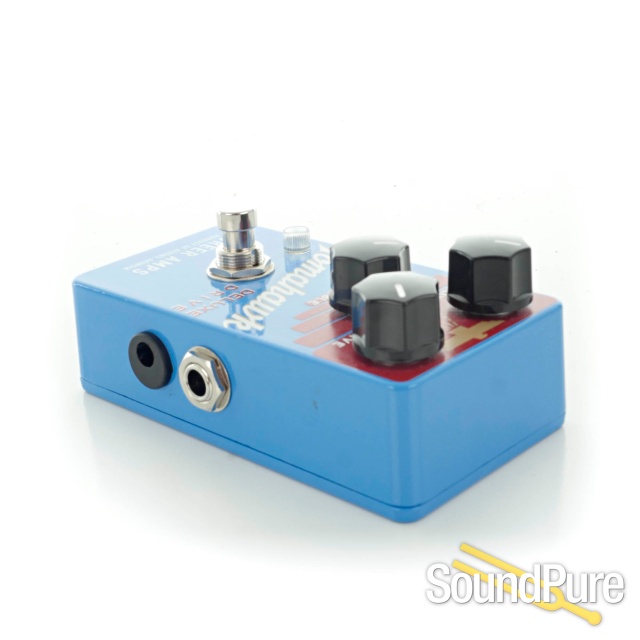 The Tomahawk Deluxe Drive is a great medium gain “second stage” overdrive pedal. This beauty barks and snarls, but it can also lean back and simply shift your tone just a bit. This pedal CAN RUN ON 9 AND 18 VOLTS. Now that we’ve addressed that, let’s talk about some of the characteristics of this pedal. This pedal has a purposeful EQ shift that puts it squarely in the “tweed” type tonal range. At 9 volts, it compresses slightly, like the big box tweed amps do, but still has some stiffness to it, just like those wonderful tone boxes did. At 18 volts, this beauty has increased headroom, AND becomes a bit more stiff, in a lovely way. The Tomahawk is a touch sensitive, dynamic recreation of this classic sound that has a natural and instantly familiar drive texture found on classic albums from so many genres. Grab a tomahawk and add this classic American tone to your tonal palette.