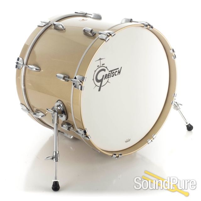 Custom Series drums feature legendary Gretsch maple shells. All toms come with chrome die cast hoops. Lug and brackets are all finished in triple plated highly polished chrome finish. Floor tom includes brackets and legs.The bass drum is equipped with Gretsch heavy-duty telescopic spurs without the bass drum tom mounting plate and a coated Powerstroke 3 batter head. All toms will ship with Coated single ply batter heads and Clear single ply resonant heads.