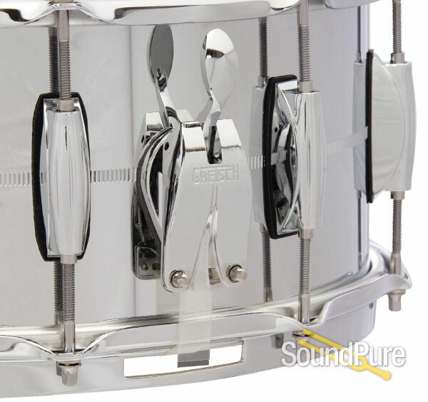 The Gretsch® Brooklyn Series Chrome-over-Steel snare drums are the latest additions to the Brooklyn snare drum series. The drums feature knurled 2.0mm thick chrome plated steel shells. With highly polished chrome lugs, Lightning throw-off, butt plate and Gretsch “302” 3mm/double-flanged hoops, every drum comes complete with 20-strand snare wires and Gretsch Permatone