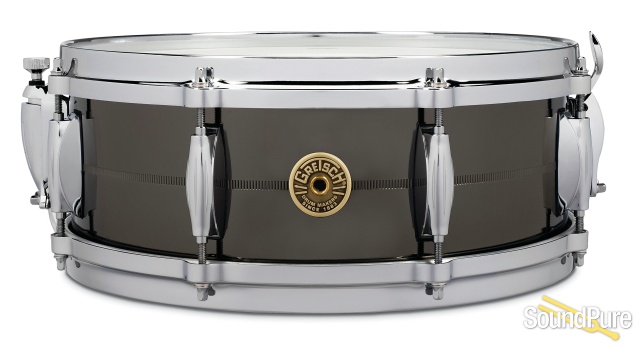The Gretsch Solid Steel snare is made from a cast shell that is then machined to exact tolerances. The seamless shells are 3mm thick at the shell wall and 5mm thick at the each edge and have 45-degree bearing edges. This thicker shell provides a focused note, definition of notes, and a snapping crack not found in your typical metal shell snares. The shell interiors and exteriors are finished in a sleek and glossy black nickel and includes the traditional Lightning throw-off, top and bottom die-cast hoops, 'Snap-In' key holder, center shell Gretsch knurled pattern and 42-Strand snare wire.