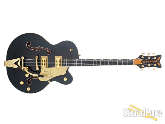 The G6136TBK features '59 styling, High Sensitive Filter'TronTM pickups, trestle bracing, Neo-ClassicTM thumbnail inlays, Space ControlTM bridge, sleek Gretsch horizontal headstock logo and a Bigsby B6GB vibrato tailpiece.