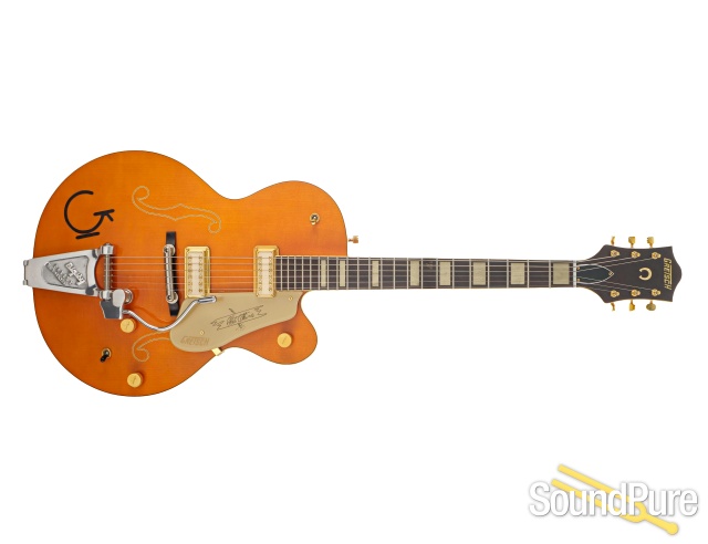 This is a very special Gretsch, the highly sought-after G6120-CGP Limited Release, made in Japan in 2009. It’s a stunning, single-cutaway hollow body, graced with beautiful laminated maple and a classic Western Maple Stain. Beyond its vintage visuals, this guitar offers incredible tonal versatility thanks to its dual TV Jones pickups and unique stereo/mono switching, allowing you to split the signal for amazing sonic possibilities. Professionally tended to by our expert luthier, this rock-solid instrument is far from "as-is"—it's an absolute gem, fine-tuned for perfect playability. This is more than a guitar; it’s a tangible investment, a classic that will inspire you and hold its value. Capture that timeless Gretsch sound and feel with an instrument that truly stands out!