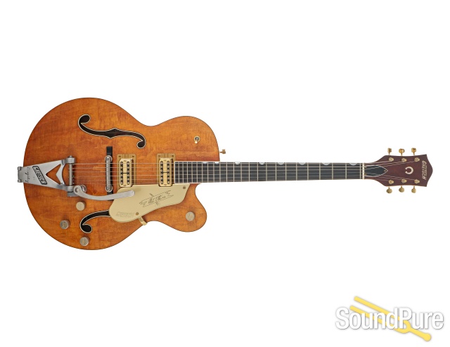 This stunning 2021 Gretsch G6120 CST is more than just a guitar; it’s a timeless tribute to rock and roll history from the legendary Gretsch Custom Shop! Masterbuilt by Stephen Stern, its gorgeous maple body, neck, and ebony fingerboard create a tone that’s as vibrant and alive as its legacy. Equipped with original Gretsch Filtertron pickups, this hollow body beauty delivers that unmistakable vintage growl and articulate “twang” that defined an era. With a slim “C” profile and 12” radius, the neck feels fast and friendly in your hands. This is a true investment piece that has been given a professional luthier setup. The truss rod and bridge were meticulously adjusted, ensuring a perfectly playable, rock-solid instrument that's ready to sing for you!