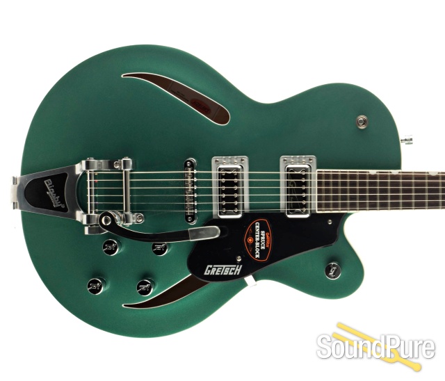 The interior solid Spruce Center Block runs the length of the guitar's 1 3/4" deep thinline style body for a more lively "high gain friendly" performance.