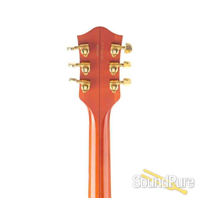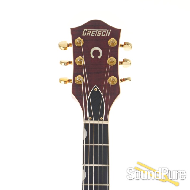 Unique Features: Neo Classic "Thumbnail" Inlay Position Markers, Curly Maple Headstock Overlay, Horseshoe Headstock Inlay, Bound Fingerboard, Multiple Body Bindings, Oversized F-Holes, Gold Plexi Pickguard with "Chet Atkins" Signpost, Knurled Strap Retainer Knobs, Adjustable Truss Rod