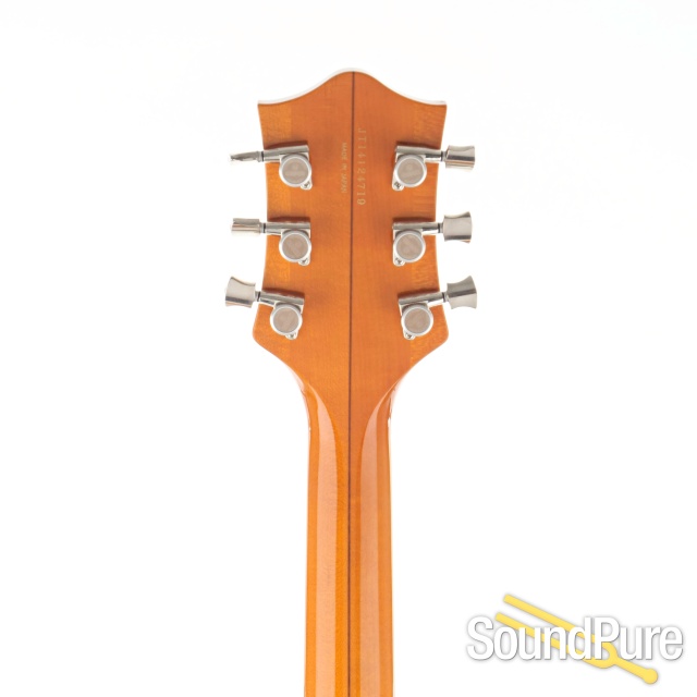 OTHER FEATURES Nitrocellulose Lacquer Finish, Aged Vintage Western Block Inlay Position Markers of Cactus, Steerheads and Fences, Routed "G" Brand on the Body, Aged Fingerboard and Headstock Binding, Multiple Aged Body Bindings, Stained Curly Maple Headstock Overlay, Inlaid Pearloid Steerhead and Gretsch Logo on Headstock, Bound Oversized F-Holes, Clear Plexi Pickguard with Embossed "Gretsch", Polished Aluminum Bigsby®, G-Arrow Control Knobs, Knurled Strap Retainer Knobs, Adjustable Truss Rod