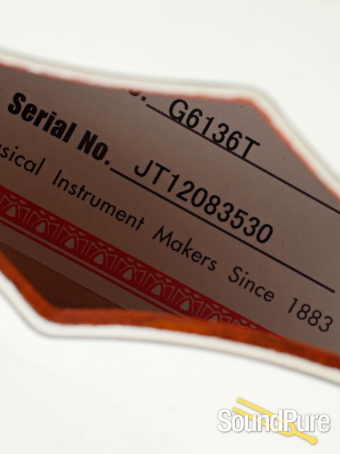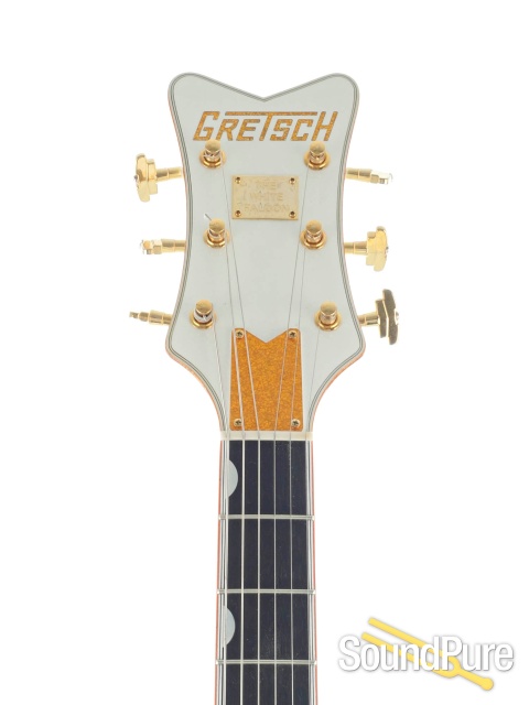 Authentically iconic, this striking guitar displays gold hardware—including the gold jeweled G-arrow knobs— gold sparkle bound neck, body and F-holes, vintage white gloss nitrocellulose lacquer finish and gold vintage thick plexi pickguard with Gretsch logo. With its stunning looks and huge sound, the iconic G6136T-59 Vintage Select Edition '59 Falcon™ Hollow Body with Bigsby® is the crown jewel of Gretsch guitars. Includes a deluxe hardshell case.