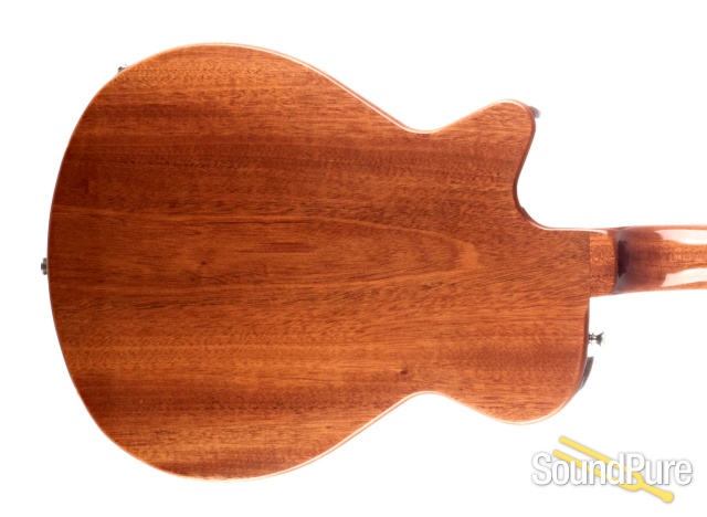 The Grez Mendocino is a compact (13.25"), light weight (5lbs) semi-hollobody guitar with the voice of a full size semi-hollowbody. Its strong voice is imparted by the nature of it's internal structure and a high quality, acoustic guitar grade, Old Growth Redwood top.