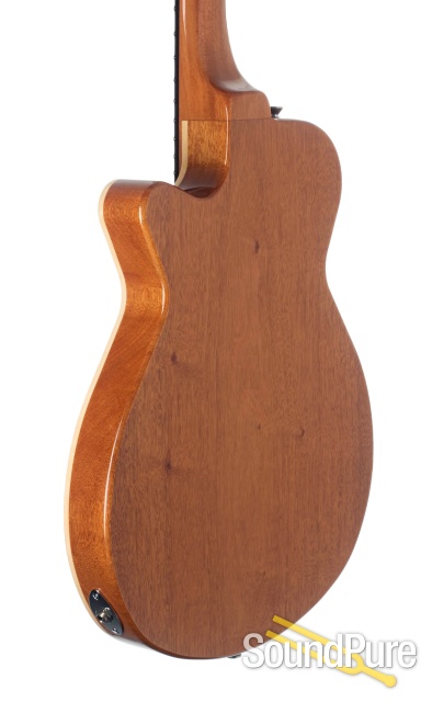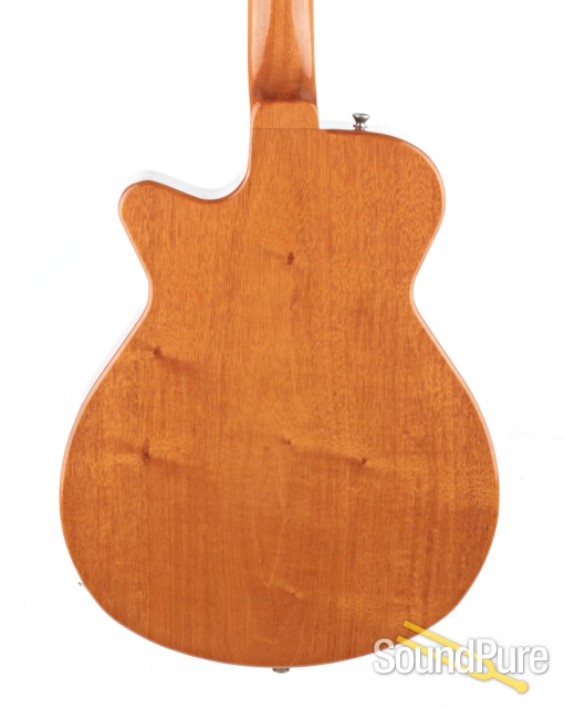 The Grez Mendocino is a compact (13.25"), light weight (5lbs) semi-hollobody guitar with the voice of a full size semi-hollowbody. Its strong voice is imparted by the nature of it's internal structure and a high quality, acoustic guitar grade, Old Growth Redwood top.