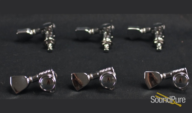 The newest addition to the Grover family, these locking machine heads utilize the famous 18:1 Rotomatic® design with a “thumb screw” mechanism which locks the string into place.
