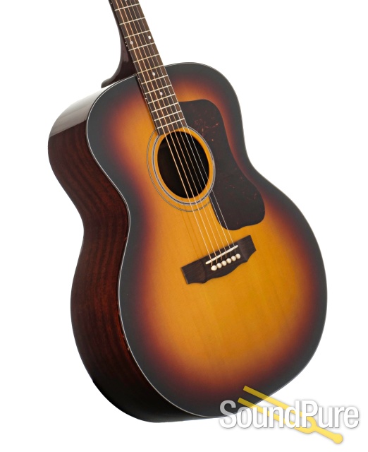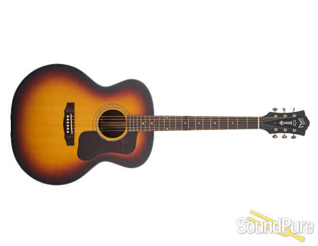 Introducing the Guild F-40, a true gem from Guild's USA workshop. This handcrafted F-Jumbo guitar is more than just an instrument—it's an investment in your musical future. Its solid Sitka spruce top and solid mahogany back and sides deliver an articulate and resonant sound, perfect for all styles of play. The jumbo body and scalloped X bracing create a big, bold, and beautifully balanced tone with powerful projection. The comfortable C-shape mahogany neck ensures effortless playability, and with its expertly cut compensated bone saddle, this guitar offers impeccable intonation and sustain. This isn't just an instrument; it's a partner in your musical journey, ready to inspire for years to come!