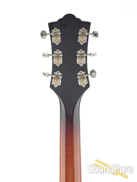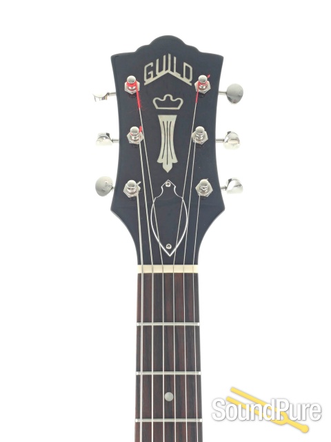 Non-cutaway model with thinbody arched maple top. Guild’s T-50 is based on a mid-1960s T-50 model and features an arched maple back, maple sides, and a sleek, Vintage Sunburst finish. With beautiful vintage details like the Guild harp tailpiece, iconic center-raised headstock and ivoroid binding, the T-50 harkens back to the classic Guild vibe of the 1950s and ‘60s. Low output single-coil pickups and an easy-to-amplify 1 3/4” body depth complete this guitar, which promises to offer another generation of guitarists the distinctive Guild styling and voice.