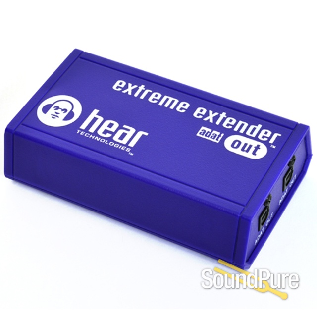 The Extreme Extender was designed to solve ADAT Optical distance limitations. In addition to extending ADAT optical interface up to 500 feet, the Extreme Extender ADAT Out can be connected to the HearBus out of a hub to obtain two ADAT outputs.