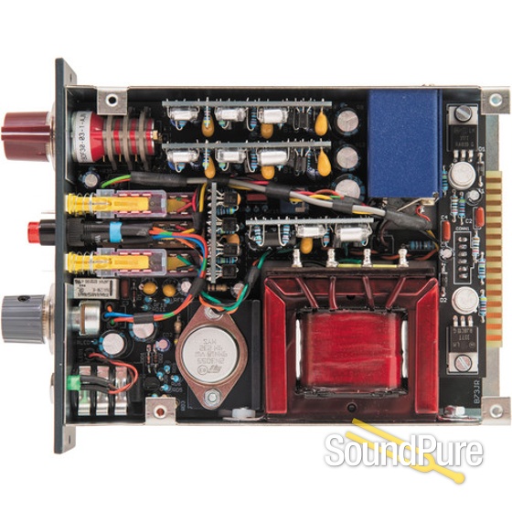 The preamplifier supports selectable HI-LO minimum balanced and floating input impedances that accommodate a range of microphone types including vintage ribbons. You can also switch the module into line mode to re-amplify pre-recorded tracks and add color to a mix. Plugging in a mono 1/4" input into the DI port on the front of the unit automatically switches the module from MIC to DI mode. A discrete component Class A 3rd order 80 Hz high-pass filter with an 18 dB per octave slope has been added for recording sources without the effects of low-frequency coloration. An output control knob is included to prevent overloading the preamplifier.