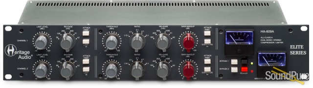 Heritage Audio is proud to announce the HA-609A, a modern, improved take on the classic tracking/mixing diode bridge compressor. As with the other products in their Elite Series, the HA-609A takes advantage of the latest in manufacturing technology to offer an unprecedented value without compromising audio quality — all built at the Heritage factory in Spain.
