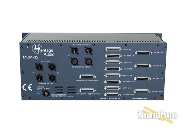 The MCM-32 employs a unique configuration, offering 32 input channels arranged into 4 subgroups of 8. Each channel features center detent Pan and Fader concentric controls plus balanced insert and mute switches.