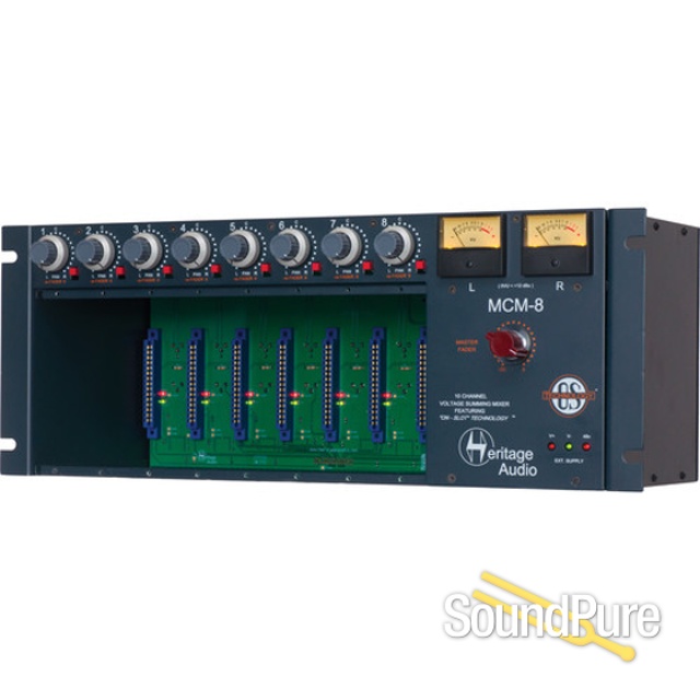 Standing for Music Compact Mixer 8, the MCM-8 II is an 8 slot 500 Series enclosure with 10 channel mixing capabilities and it´s the Top of the Line of the new Heritage Audio “ON SLOT” Technology (OTS) 500 Series enclosures. Standing for Music Compact Mixer 8, the MCM-8 is an 8 slot 500 Series enclosure with 10 channel mixing capabilities and it´s the Top of the Line of the new Heritage Audio “ON SLOT” Technology (OTS) 500 Series enclosures.