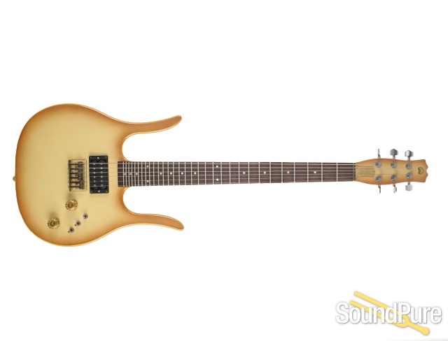 A Delightfully Weird Copperburst Hondo with 31 frets, active DiMarzio electronics and a single pickup!