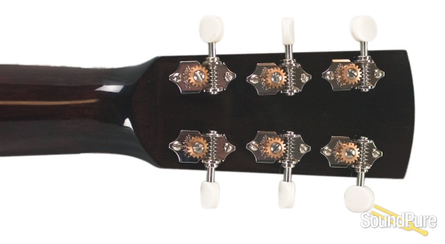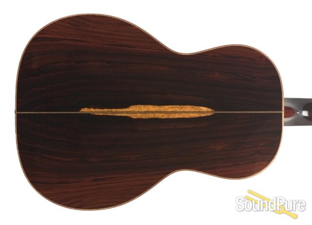 Our 12-fret 00 produces a surprising amount of volume out of a small body guitar. Very clear and balanced in tone, it's braced for light gauge strings, and designed with the fingerstyle player in mind. It features Indian Rosewood body binding and our vintage style straight bridge.
