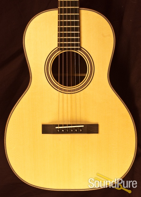 Our 12-fret 00 produces a surprising amount of volume out of a small body guitar. Very clear and balanced in tone, it's braced for light gauge strings, and designed with the fingerstyle player in mind. The 00 Custom pairs Englemann Spruce with Cocobolo back and sides. It features Indian Rosewood body binding and our vintage style straight bridge.