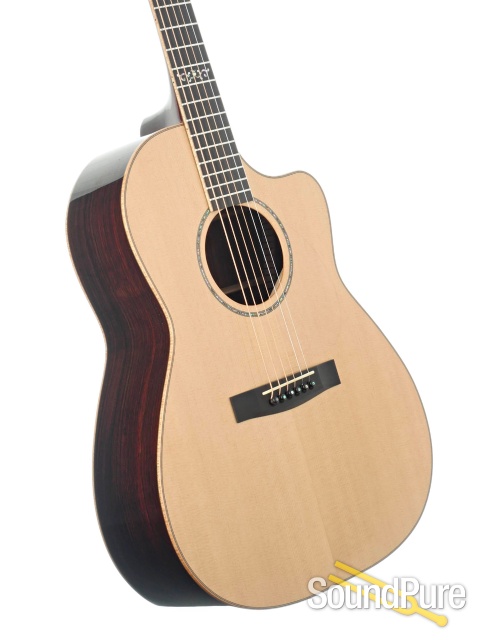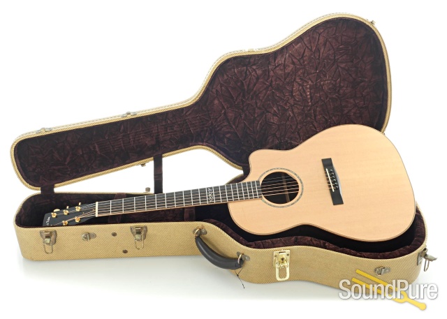 The Huss and Dalton CM model is perfect whether you are a songwriter needing an inspirational writing tool or a discerning finger stylist, or perhaps a blend of both. Though somewhat smaller than a dreadnought and with deep sides at 4-5/8″, it really packs low-end warmth and response. The elegant design includes a soft Venetian cutaway, body and fretboard bindings of figured maple, an abalone rosette, and an understated 12th-fret scroll fretboard inlay in abalone. The Huss & Dalton CM will give you the full tonal spectrum, as well as the reach to achieve the most complex melody.