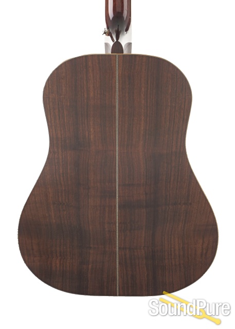 This DS is pictured with our 12-fret option. With 12 frets to the body and 24.9 scale length, these guitars have the power of our standard DS but with a rounder tonal quality. To many players, 12-fret guitars are imbued with near-mystical qualities. When the neck is moved two frets toward the body, the sound hole and bridge must follow its trajectory and the bracing must be rearranged to suit. There’s no reason to think it will project like a 14-fretter, and it doesn’t. It’s bigger! And not a guitar for the timid!