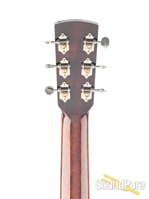 This slope-shouldered guitar is designed for brawny power. Big in sound but not short on clarity, this guitar is a nod to the traditional slope-shoulder guitars of the 1930s and ’40s. Its standard woods are Sitka spruce paired with either Indian rosewood or mahogany. In concept, we think of the rosewood version as a slope-shouldered D-RH and the mahogany version as a slope-shouldered DM. The pairs sound similar, and all four sound their best with medium strings and hard playing. The DS comes standard with a beautiful vintage sunburst, maple bindings, and 42-style snowflake fretboard inlays.