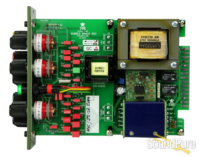 This tiny module is equipped with transformer balancing on inputs and outputs (Carnhill) as well as a discrete power circuit. Of course the entire filtering section is passive and mirrors fully analogue equalizers from the 60s.