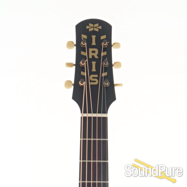 A Jumbo-Sized Acoustic from our friends at Iris, featuring Scalloped Adrirondack bracing, and Maple Back & Sides