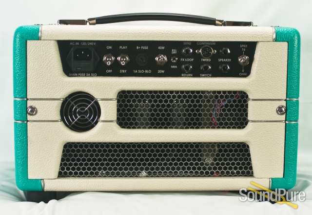 If the Princeton Reverb has one complaint, it is that it is not powerful enough to remain clean at loud stage volumes. With this in mind we opted to double the number of 6V6 output tubes in the Fullerton from 2 to 4, and in so doing doubled the maximum power of the Fullerton to 40W! This increased power, along with our custom wound 200W output transformer, will deliver more volume, headroom and low end punch than you’ve ever heard from a Princeton Reverb! Low notes that typically can “flub out” on a Princeton will remain crisp, tight and focused as the extra wattage works to deliver your tone with unparalleled clarity and definition. We have also included a Half Power Switch on the back of the amplifier so you can adjust the output power from 40W down to 20W.
