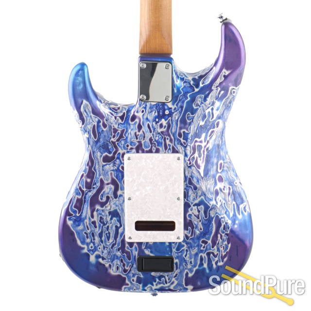 Cantankerous Tyler Strat with a beautiful Tuckerberry Shmear finish! Equipped with series/parallel switches + midboost!