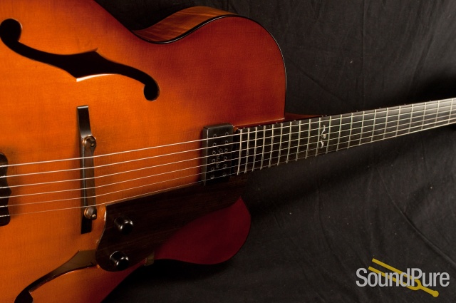 The Avalon from Luthier Jimmy Foster, is a gorgeous archtop guitar made with a Sitka Spruce top, Maple back and sides, and has a beautiful Cremona burst. Jazz Guitarist Keith Ganz plays some incredible licks on this masterpiece. The Avalon sounds stunning in addition to its beautiful looks. Check out SoundPure's website to look at our incredible collection of hand chosen boutique guitars, made by master luthiers all over the world. If you have any questions, call one of our guitar experts today. 919.682.5552.