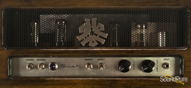 There are two controls for Volume and Tone, and there are two switches. The switches are "Bright," and "Boost." Between these four controls there are a lot of Class A sounds available. It has wonderfully rich, smooth tone, with a lot of punch. You have a choice of preamp sounds. You can use either a 6SL7 or the usual 12AX7. We always ship the Brenda K. with a 6SL7 installed because it has a much fatter, richer sound. We also include a boxed 12AX7.
